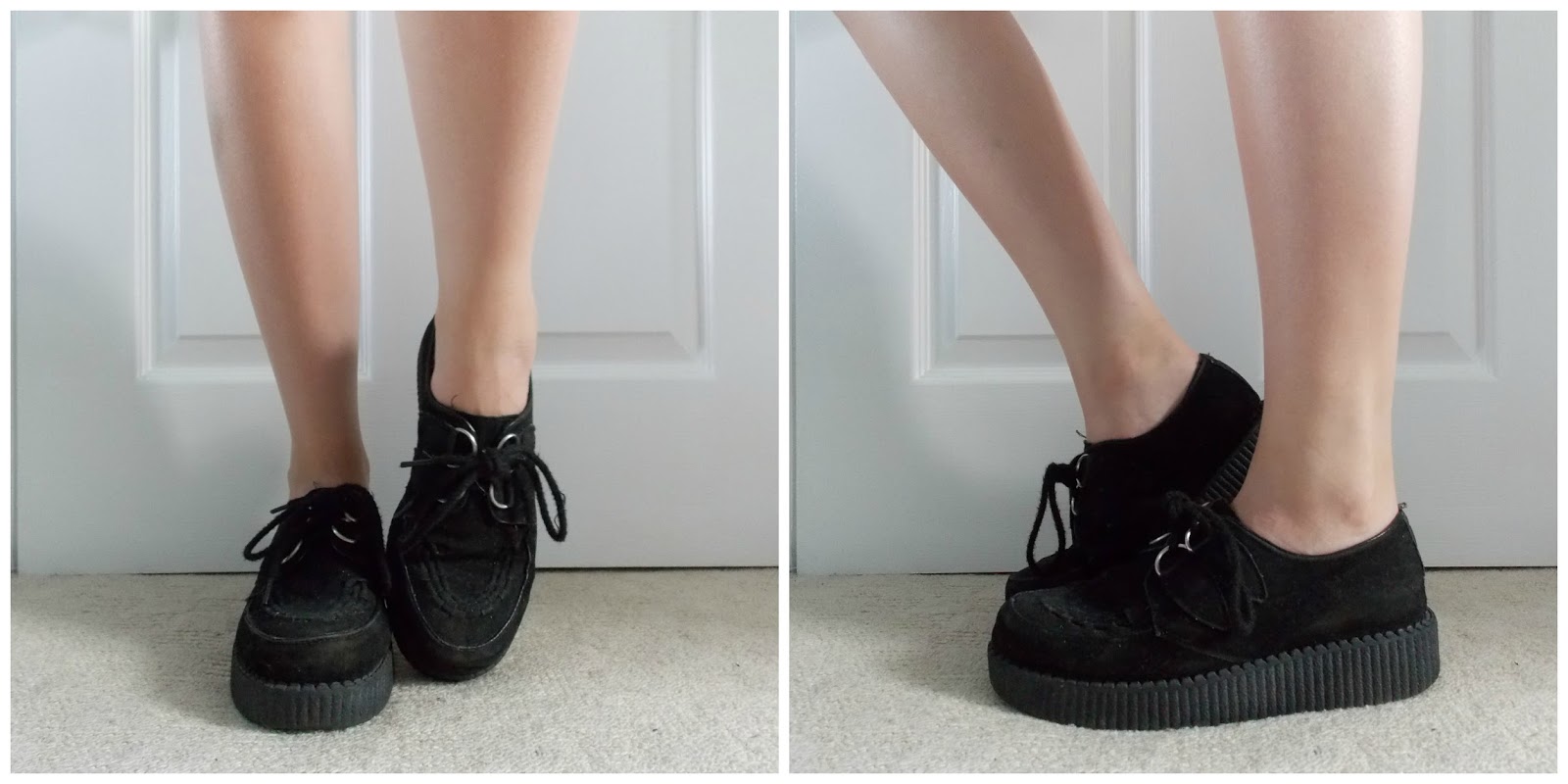 Ahh, the creepers... I think it was 2, maybe 1 and a half years ago when creepers where "the big thing" and of course, I had to be in on the bandwagon because I'm so up to date like that - not. I actually still really like the way these look, they just make me a lot taller and I'm already quite tall, so there's a slight disadvantage there. I believe these were from Barratts so they were probably about £20 there or there abouts. They're still so comfy!